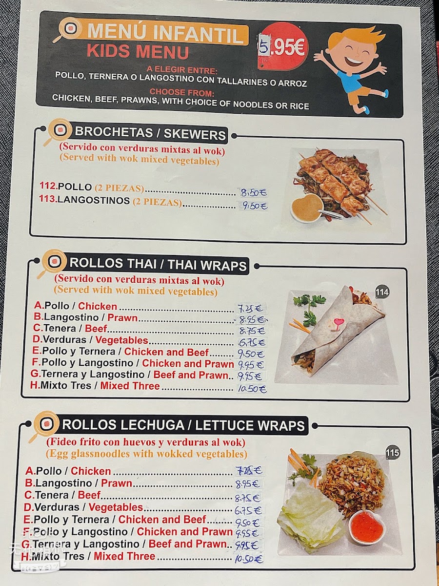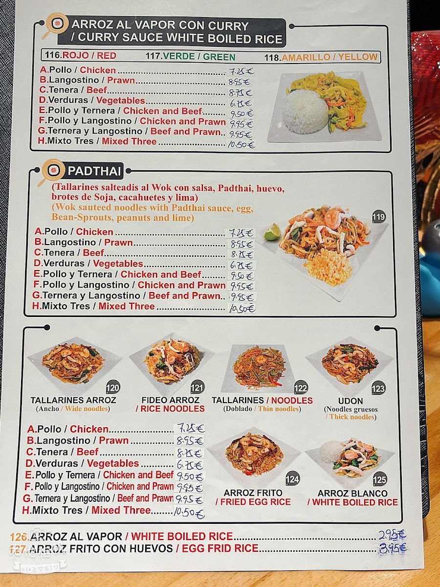 The menu also welcomes younger guests with simple, familiar options such as Arroz Frito de Pollo or Langostines from the kids’ menu, making it easy to share a meal as a family. Alongside food, a modest selection of wines complements the flavors without overwhelming the experience.